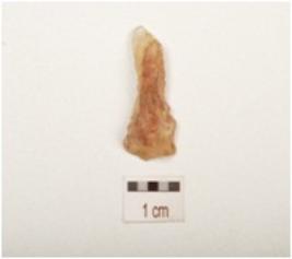 | Description / विवरण | Quartz blade with a mid ridge on dorsal side, broken both ends, use wear marks on cutting edges and triangular in section. |