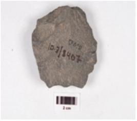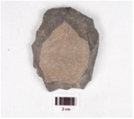| Description / विवरण | A basalt scraper diffused bulb at ventral side, flake scars on the surface and wavy edges. |
