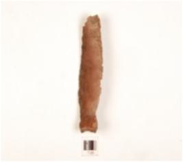 | Description / विवरण | A blade has flake scars on the surface, prepared platform on the proximal end and partly retouching on the cutting edges. |