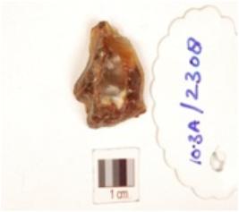 | Description / विवरण | A bruin has blade scars on surface and slightly curved point. |