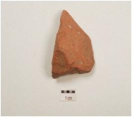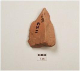 | Description / विवरण | A flake made on sandstone, flakescars on dorsal side, broken on proximal distal end. Plano convex in section, |