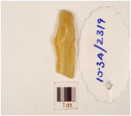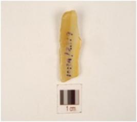| Description / विवरण | A utilized flake has blade scars on surface and use-wear marks on one edge. |