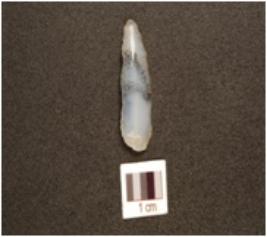 | Description / विवरण | A blade made on flake has blade scars on the surface, prepared platform on the proximal end , pointed and use marks on the cutting edges. |