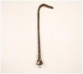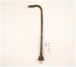 | Description / विवरण | A long iron nail, tapering to the pointed end, squarish cross section, knobbed round head, both end intact. |