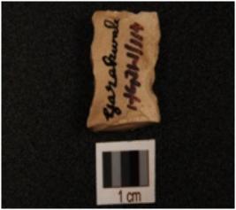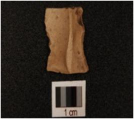 | Description / विवरण | Fragment of a chert blade, middle ridge on the surface and use wear marks on the cutting edges. |