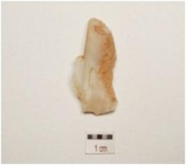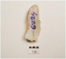 | Description / विवरण | A flake made on chalcedony, bladscars on surface and cortex on side end. |