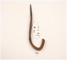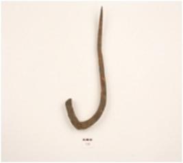 | Description / विवरण | An iron hook, bent head tapering to pointed end, rectangular cross section, slightly bent from the pointed end. |