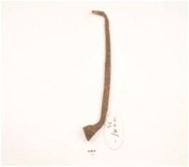 | Description / विवरण | An iron nail, knobbed flat head, circular section, tapering to the pointed end, bent from both ends, |
