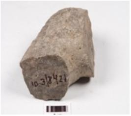 | Description / विवरण | Fragment of a ring stone made of sandstone with rough surface. |