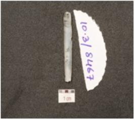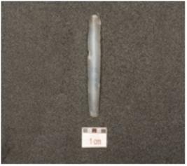 | Description / विवरण | A blade made of chalcedony, prominent bulb on ventral ridge on the dorsal and sharp parrellel edges. |