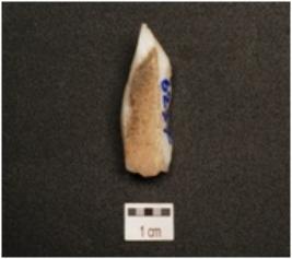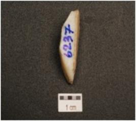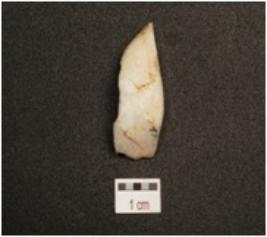 | Description / विवरण | A core made on chalcedony, bladscars on surface, cortex partly visible one side, rough surface. |