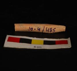| Description / विवरण | Fragment of a bone point with smooth surface. Slightly broken tip end and partly missing end. Cream in colour. |