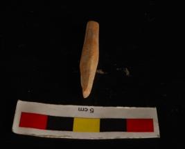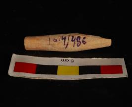 | Description / विवरण | Fragment of a bone point with circular in section. Slightly broken tip one end and smooth surface. Cream in colour. |