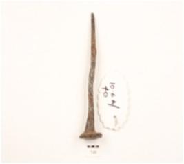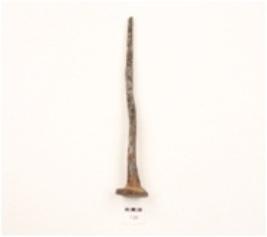 | Description / विवरण | An iron nail, tapering to the pointed end, flat and circular head, squarish section. |