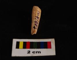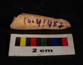 | Description / विवरण | Fragment of a bone point with circular in section. Pointed one end and cream in colour. |