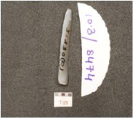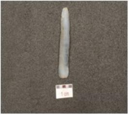 | Description / विवरण | A blade made of chalcedony, prominent bulb on ventral ridge on the dorsal and use wear marks on edges. |
