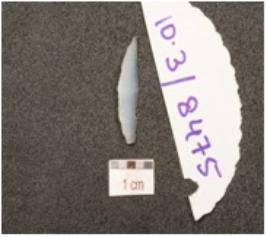 | Description / विवरण | A blade made of chalcedony, prominent bulb on ventral ridge on the dorsal and use- wear marks on edges. |