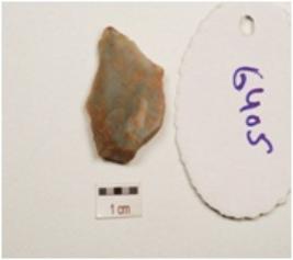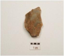 | Description / विवरण | Flake made on end struck chert , prominent bulb on ventral surface, flake scars on dorsal surface. |