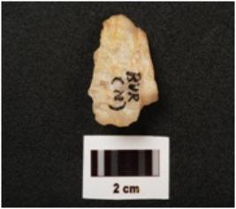 | Description / विवरण | A scraper made by quartz, prepared platform use wear marks on cutting edges . |