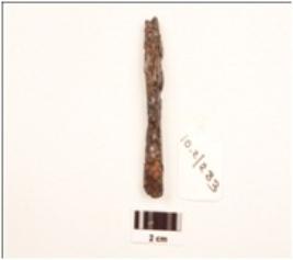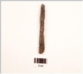 | Description / विवरण | An iron nail, long in shape, uneven surface and rusted, tip is intact. |