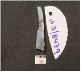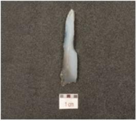 | Description / विवरण | A blade made of chalcedony, ridge on the dorsal and use wear on cutting edges. |