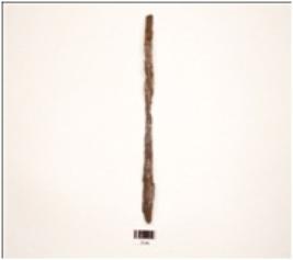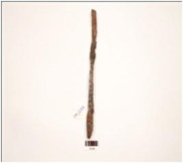 | Description / विवरण | An iron nail, long in shape, uneven in surface, rusted. |