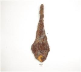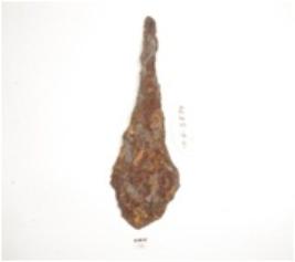 | Description / विवरण | Iron spear head, pointed along one end, broad along the other end with blunt edge. |
