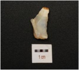 | Description / विवरण | A chert flake with flake scars on dorsal, cortex at one end and use wear marks on edges. |