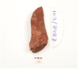 | Description / विवरण | A core made of jasper, blade scars on surface, irregular shaped and red colour. |