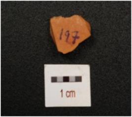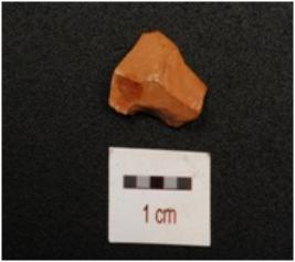 | Description / विवरण | Fragment of chert blade with mid ridge and flake scars on dorsal, triangular section and blunt working edge. |