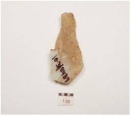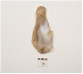 | Description / विवरण | A utilizied flake, made of chalcedony, prominent bulb on ventral and use wear marks along working edge. |