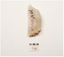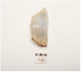 | Description / विवरण | A flake , made of chalcedony, flake scars on surface and prominent bulb on ventral. |