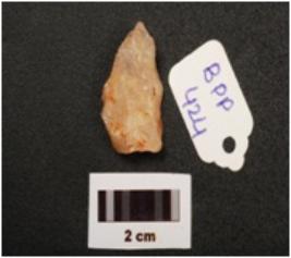 | Description / विवरण | A Quartz waste flake, with irregular shaped, with pointed end one side rugged surface. |