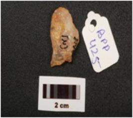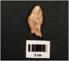 | Description / विवरण | A Quartz waste flake with rugged surface, irregular shaped and pointed one side. |