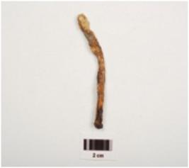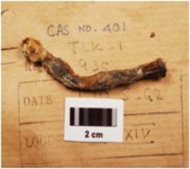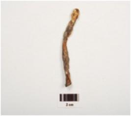 | Description / विवरण | Fragment of iron nail, slightly bent in middle round head and rusted. |