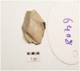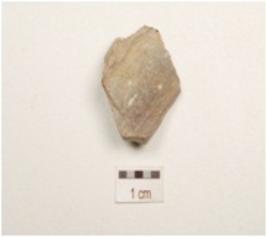 | Description / विवरण | Flake made on chert, flake scars on dorsal side, diffused bulb on ventral side, use wear marks on cutting edge. |