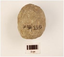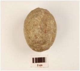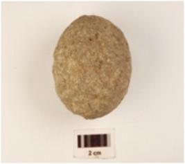 | Description / विवरण | Probably an oval shaped hammer stone with circular cross section and battery marks on one end. |