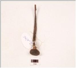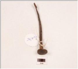 | Description / विवरण | A nail made on iron pointed one end, square in section, broad circular top portion, slightly bend body. |