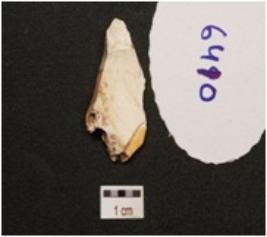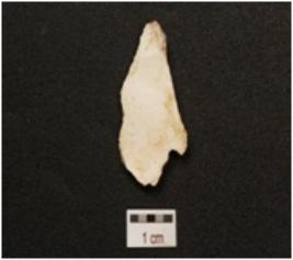 | Description / विवरण | Flake made on chert flake, flake scars on dorsal surface use wear marks along cutting edge. |