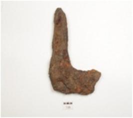 | Description / विवरण | Fragment of iron sickle, thick handle along one end, L- shaped blunt cutting edge on the other end. |