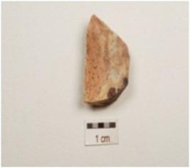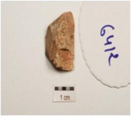 | Description / विवरण | Flake made on chert, flake scars on dorsal surface use wear marks along cutting edge. |