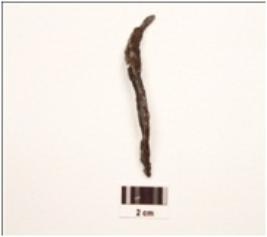 | Description / विवरण | An iron nail, uneven surface, and twisted end. |