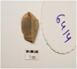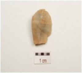 | Description / विवरण | Flake made on chert, six flake scars on surface, use wear marks on cutting edge. |