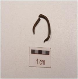 | Description / विवरण | Fragment of iron nail, pointed one end other end is flat, bent in the middle broken head and rusted. |