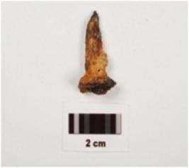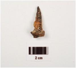 | Description / विवरण | Fragment of iron nail, circular head but broken, rusted and pointed end. |