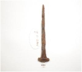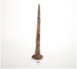 | Description / विवरण | Iron nail, pointed along one end, slightly broad head with flat surface on the other end. |