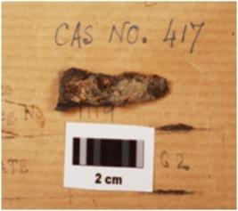 | Description / विवरण | Fragment of iron nail, pointed one end other is broken, Rough surface and rusted. |