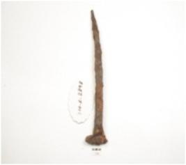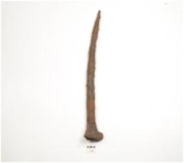 | Description / विवरण | Iron nail, slightly broad along one end with flat surface and pointed along the other end. |