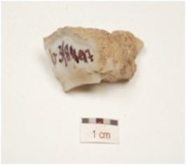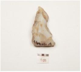 | Description / विवरण | A flake, made of chalcedony with flake scars on surface. |