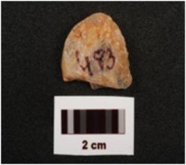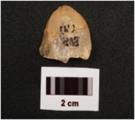 | Description / विवरण | A scraper with prominent bulb on ventral side, prepared platform, flake scars on dorsal and use wear marks on cutting edge. |